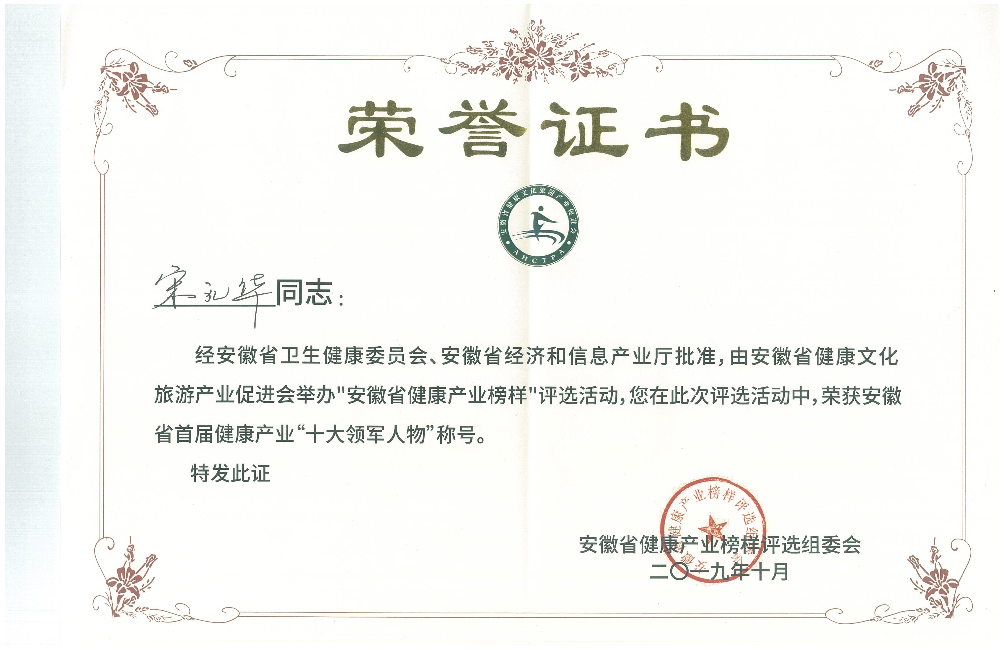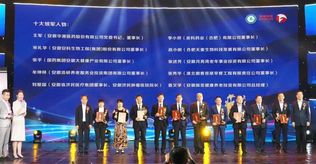 2019年10月15日,“平安養(yǎng)老杯”安徽省首屆健康產(chǎn)業(yè)榜樣頒獎盛典上,安科生物宋禮華董事長榮獲“安徽省健康產(chǎn)業(yè)榜樣評選十大領(lǐng)軍人物”稱號。