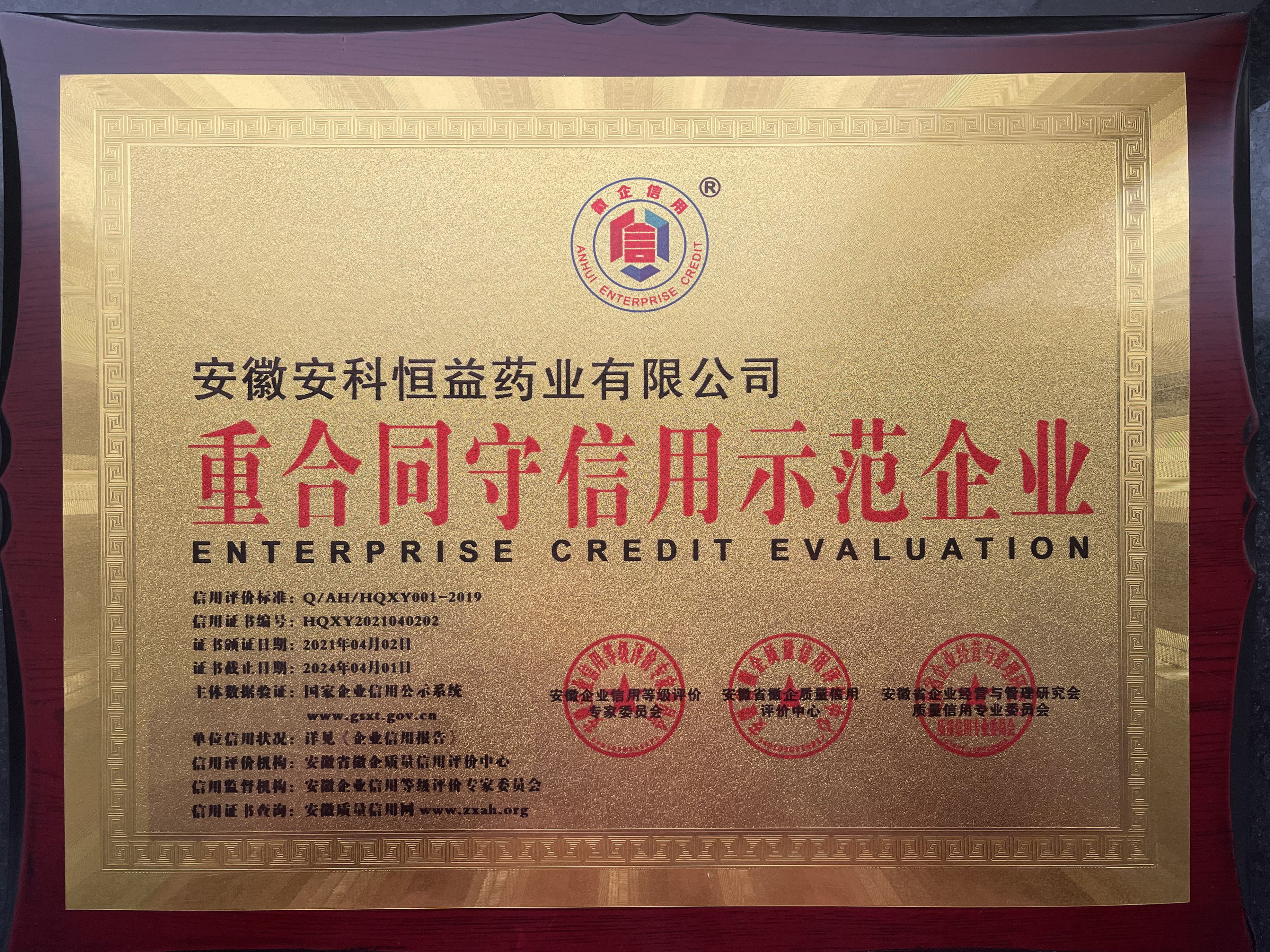 依據《企業信用評價指標》、《企業信用等級評價管理辦法》,我公司于近日獲得“重合同守信用示范企業”榮譽稱號。