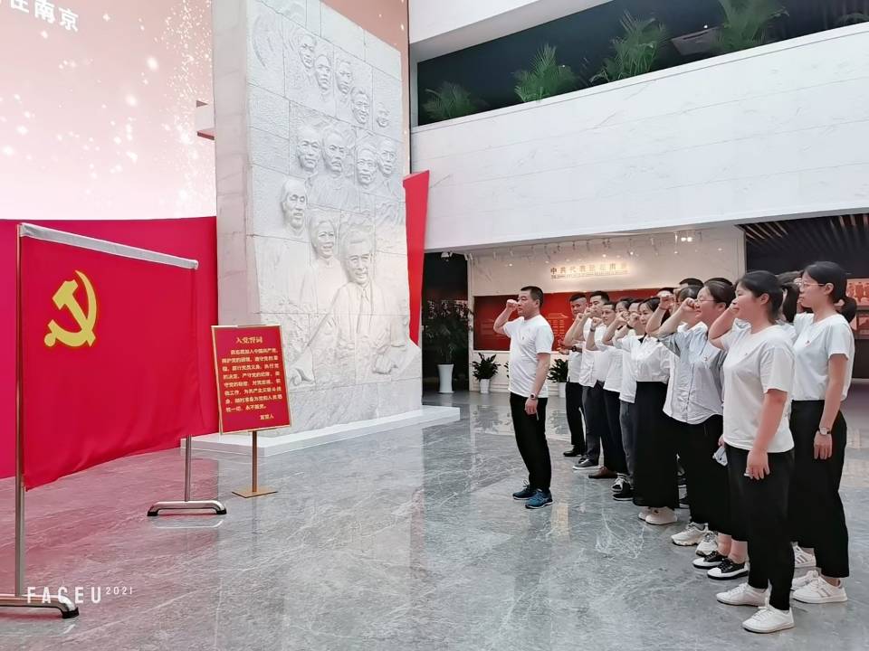 在梅園新村紀(jì)念館內(nèi),全體黨員胸佩黨徽、列隊(duì)肅立,面對鮮紅的黨旗,支部書記朱衛(wèi)兵同志帶領(lǐng)大家高舉右拳重溫了入黨誓詞,“我志愿加入中國共產(chǎn)黨,擁護(hù)黨的綱領(lǐng)、遵守黨的章程……”莊嚴(yán)肅穆、鏗鏘嘹亮的宣誓聲再次表達(dá)對黨的鄭重承諾。